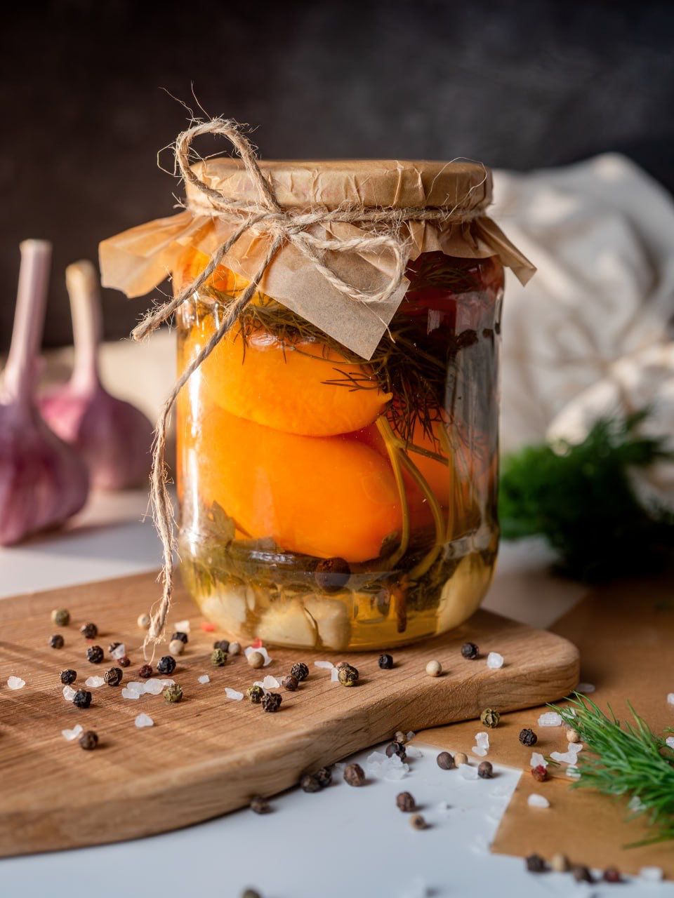 Сочные солёные помидоры с добавлением чеснока и зелени.